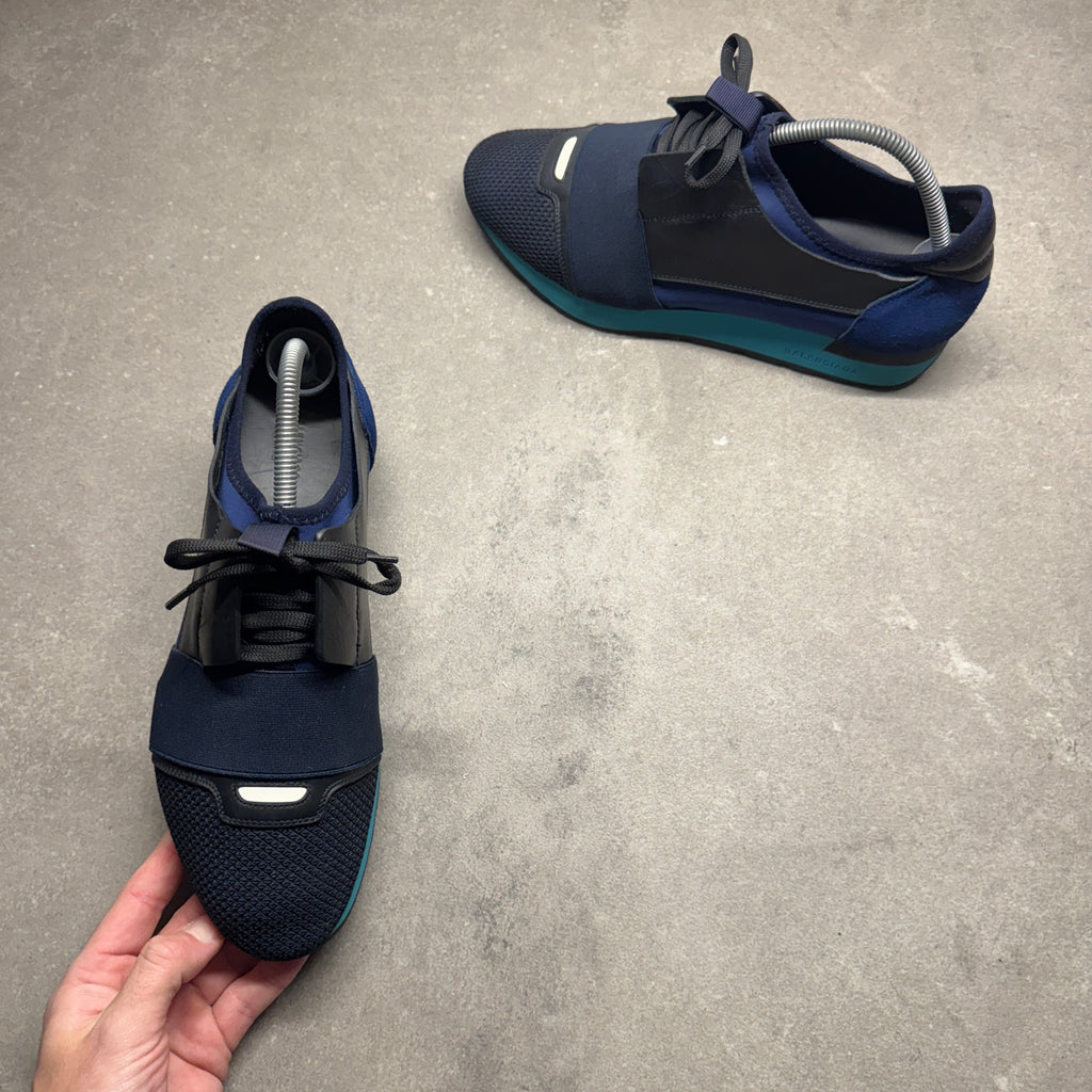 BALENCIAGA MENS RACE RUNNER BLUE EU 41 (FIT A UK 7 / 7.5)
