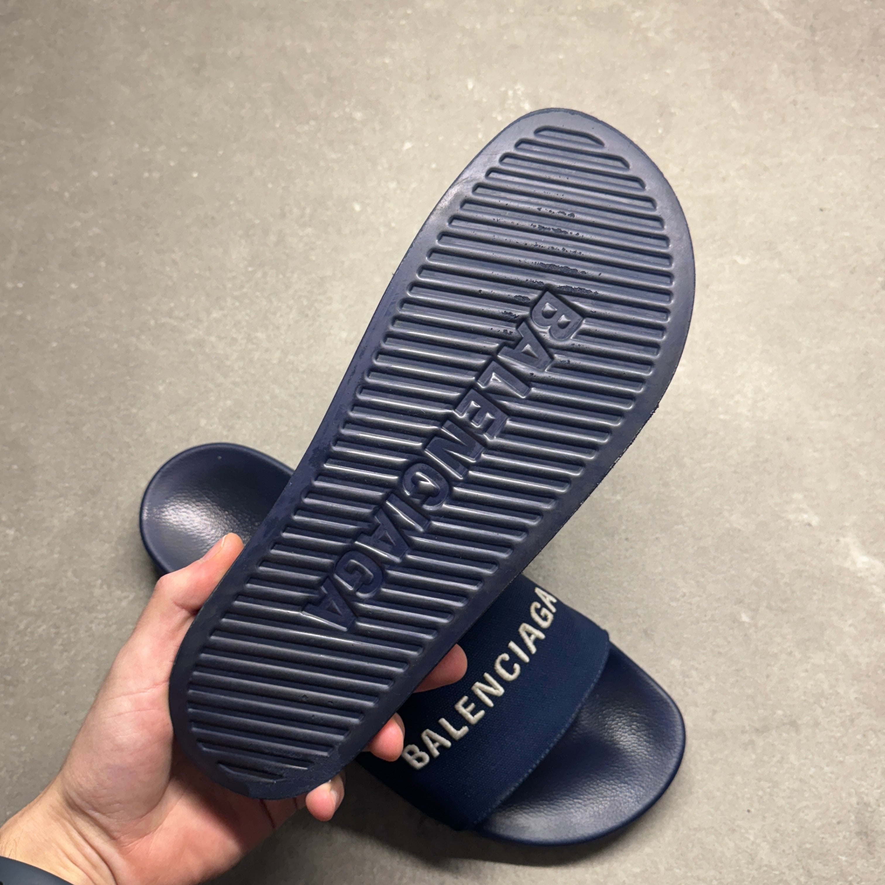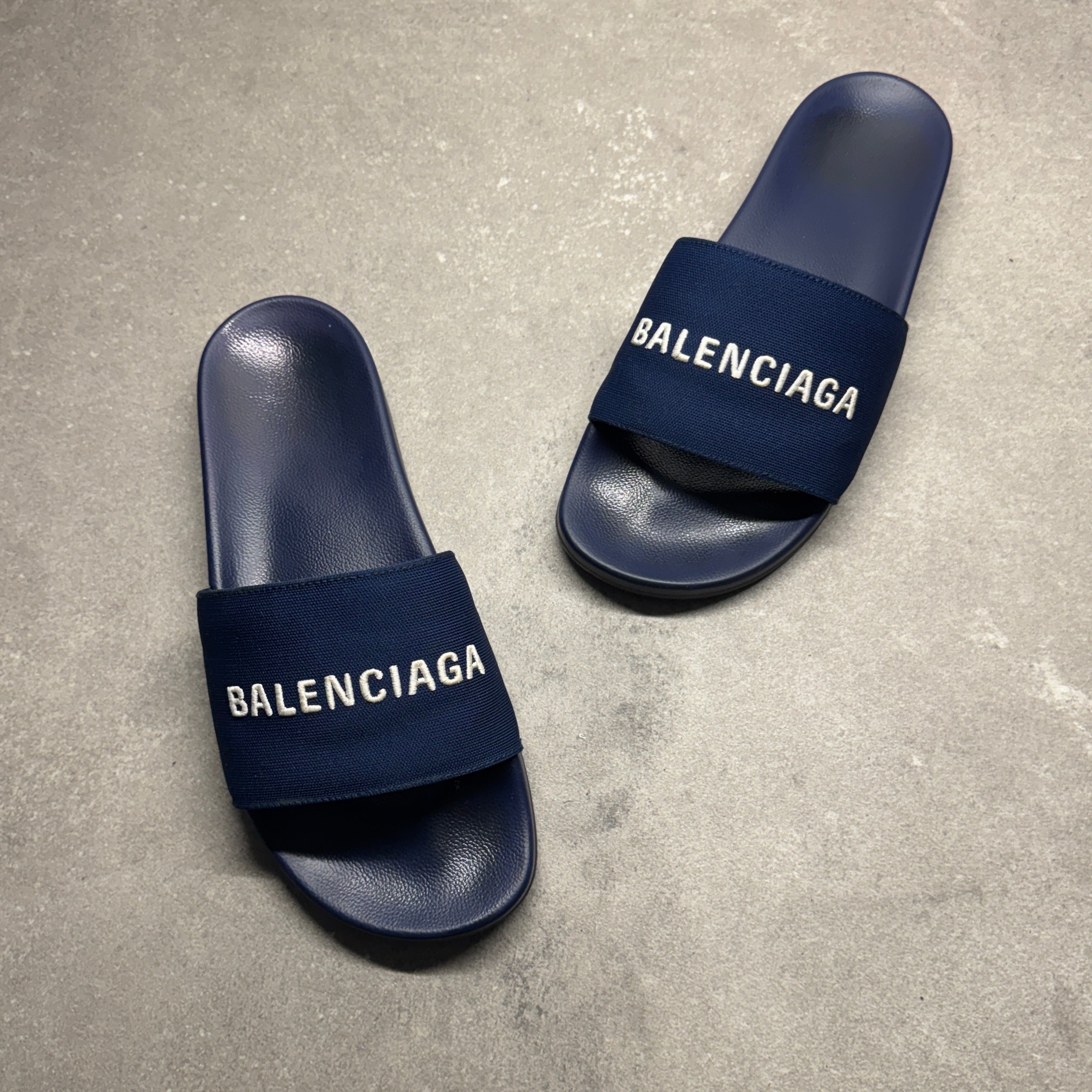BALENCIAGA SLIDES NAVY EU 44 (FIT A UK 9 / 9.5)